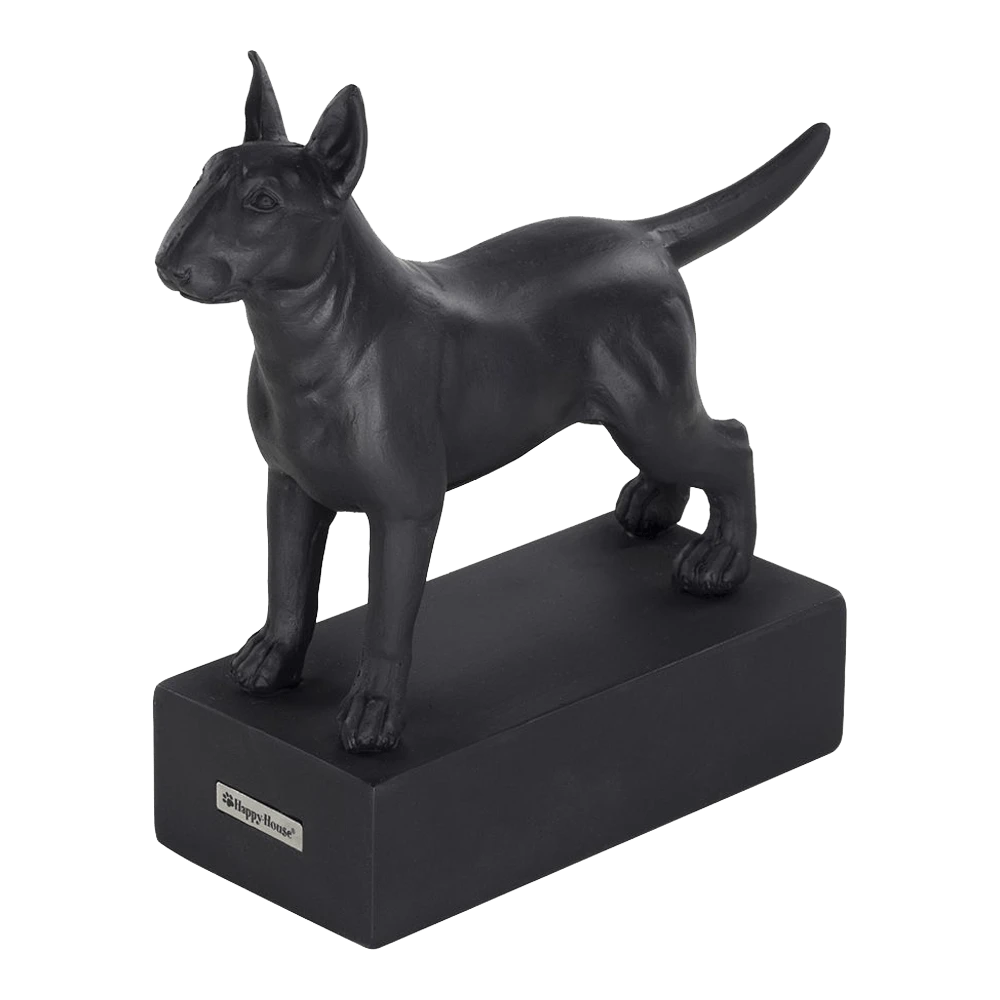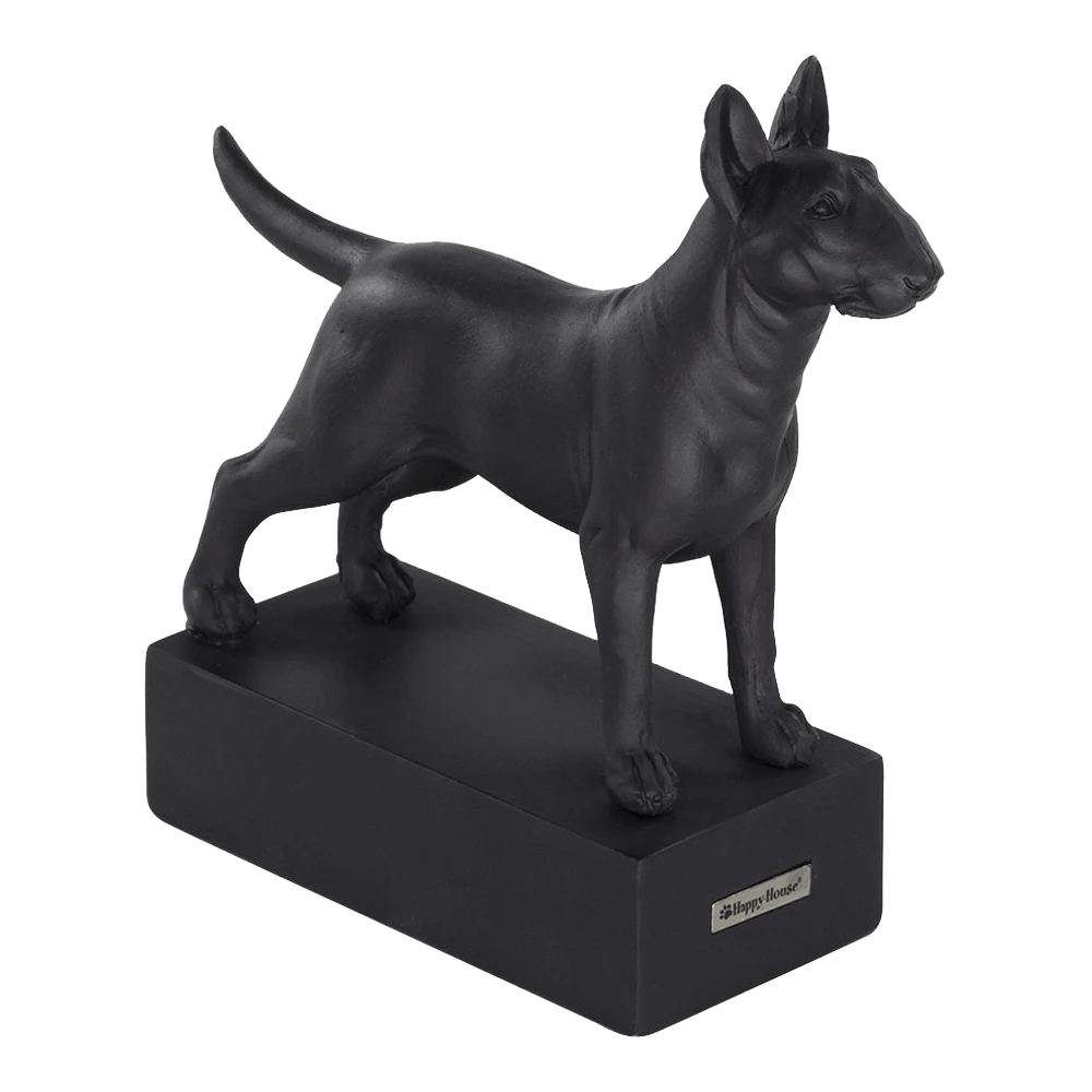 Unieke Hondenras beeldjes! Bij Happy-House zijn wij fan van alle hondenrassen. Happy-House heeft met passie een grote collectie gedetailleerde hondenbeeldjes ontworpen, in prachtig mat zwarte uitvoering van 100% polyresin mooie steenlook op sokkel. Kies je favoriete ras en laat het een mooie toevoeging zijn op je interieur. Een musthave voor elke hondenliefhebber! Deze Bull Terrier is verpakt in een mooie giftbox, leuk voor jezelf of om cadeau te geven!