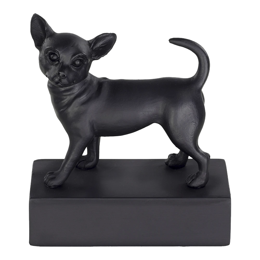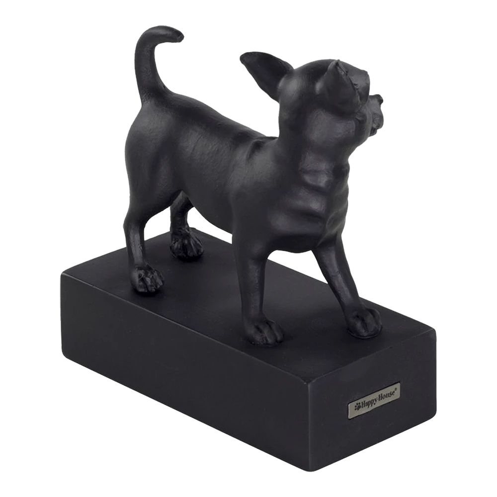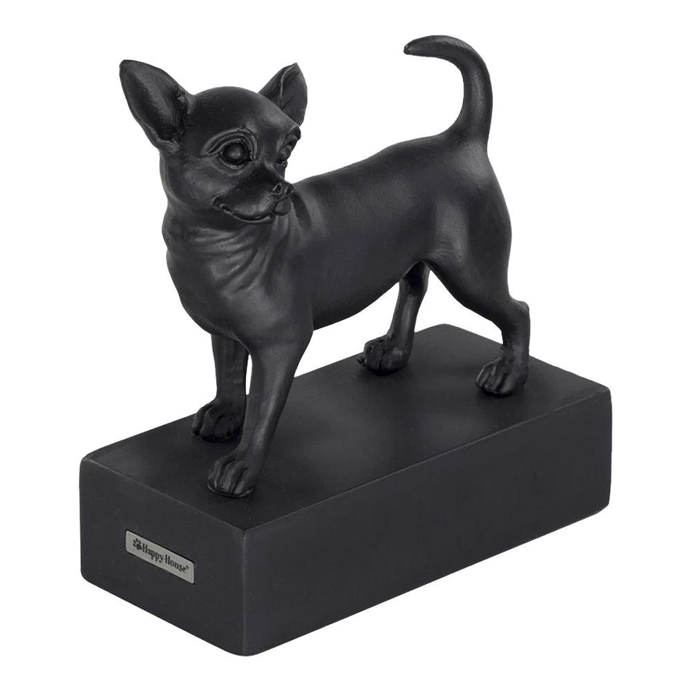 Unieke Hondenras beeldjes! Bij Happy-House zijn wij fan van alle hondenrassen. Happy-House heeft met passie een grote collectie gedetailleerde hondenbeeldjes ontworpen, in prachtig mat zwarte uitvoering van 100% polyresin mooie steenlook op sokkel. Kies je favoriete ras en laat het een mooie toevoeging zijn op je interieur. Een musthave voor elke hondenliefhebber! Deze Chihuahua korthaar is verpakt in een mooie giftbox, leuk voor jezelf of om cadeau te geven!