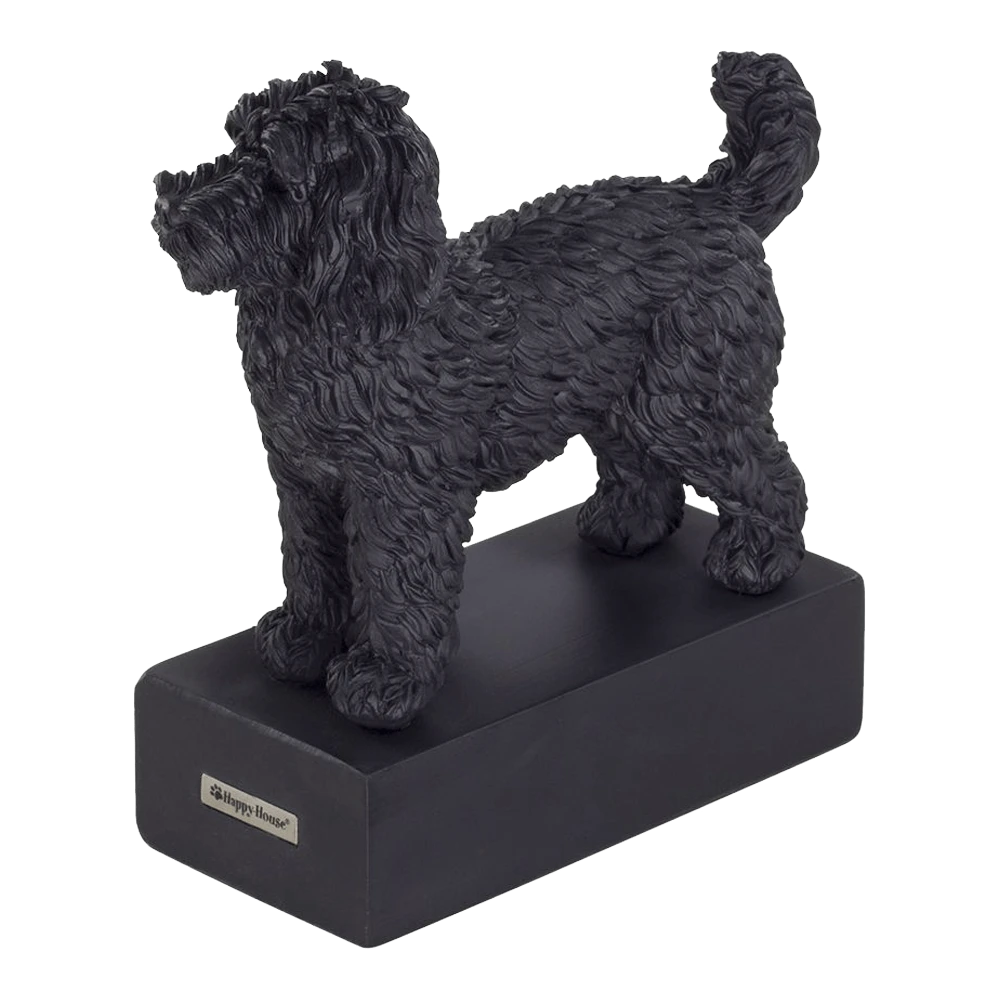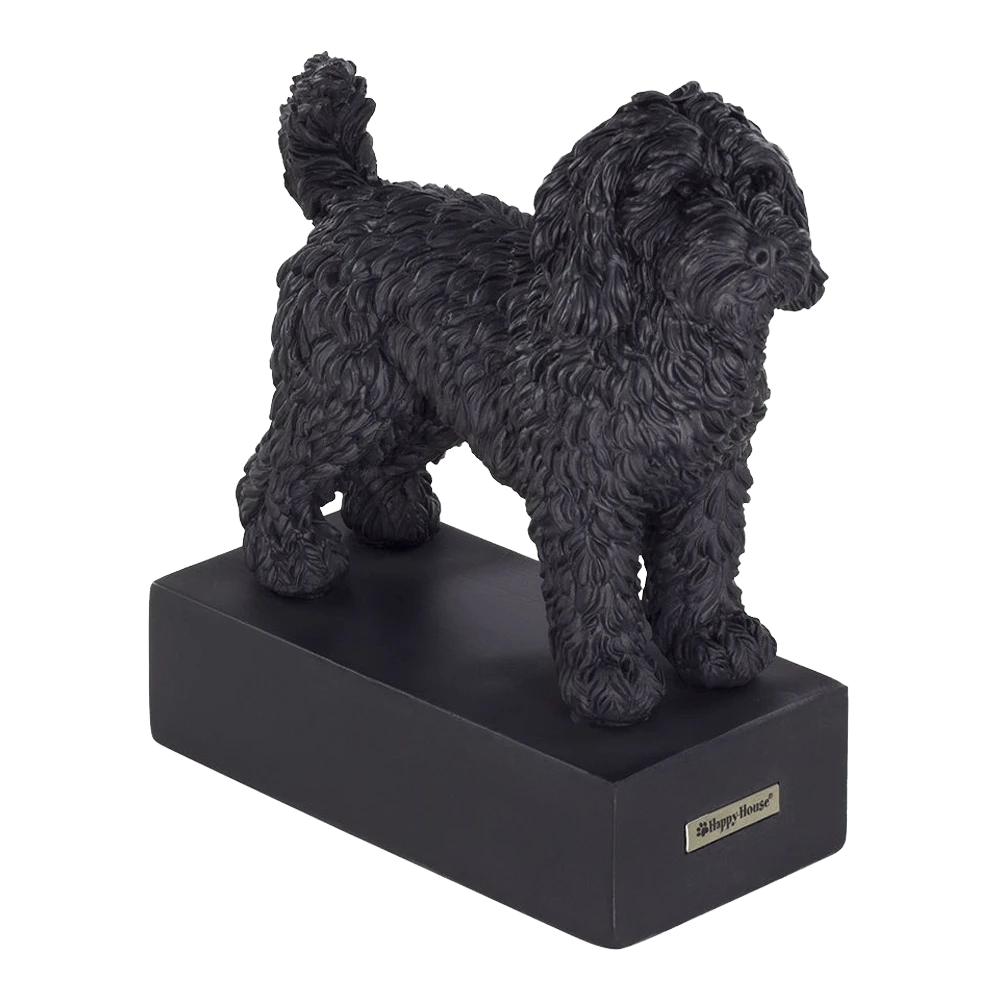 Unieke Hondenras beeldjes! Bij Happy-House zijn wij fan van alle hondenrassen. Happy-House heeft met passie een grote collectie gedetailleerde hondenbeeldjes ontworpen, in prachtig mat zwarte uitvoering van 100% polyresin mooie steenlook op sokkel. Kies je favoriete ras en laat het een mooie toevoeging zijn op je interieur. Een musthave voor elke hondenliefhebber! Deze Labradoodle is verpakt in een mooie giftbox, leuk voor jezelf of om cadeau te geven!