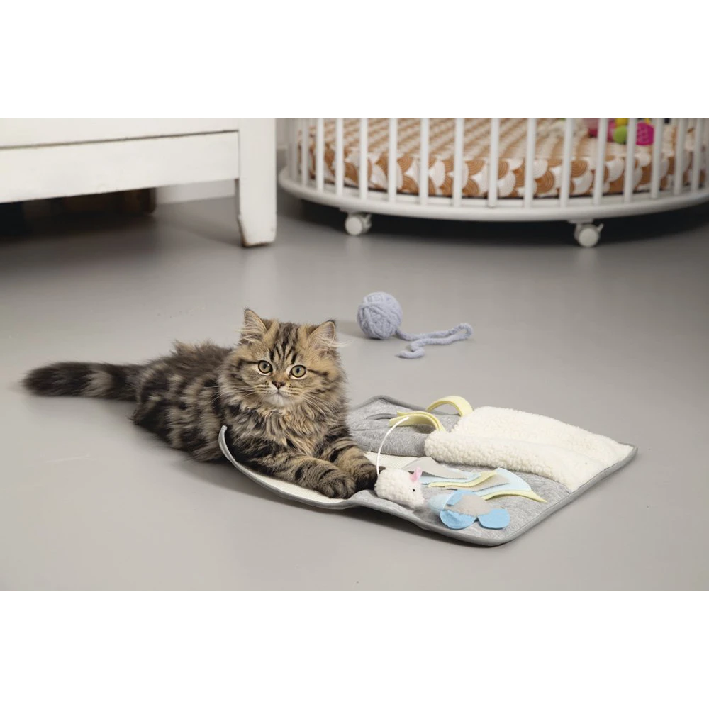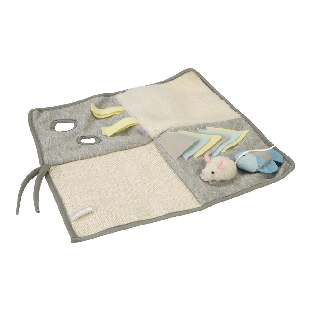 Ontdek de Beeztees Kitten Weezy Speelmat – Een unieke speelervaring voor jouw kitten! Laat je kitten kennismaken met een speelmat die speciaal is ontworpen voor zijn behoeften – de Beeztees Kitten Weezy Speelmat. Deze speelmat is geïnspireerd op de populaire snuffelmatten voor honden en biedt jouw kitten een wereld vol speelse elementen en interessante texturen om te verkennen. Het is de perfecte manier om jouw kitten kennis te laten maken met verschillende structuren en geluiden. De Beeztees Kitten Weezy Speelmat heeft vier verschillende vlakken die allemaal een unieke speelervaring bieden. Het krabgedeelte geeft jouw kitten de mogelijkheid om zijn klauwen te scherpen en te strekken. Het jaaggedeelte is voorzien van een speelmuisje en -visje om het jachtinstinct van jouw kitten te stimuleren. Daarnaast zijn er vlakjes waar je kittensnoepjes in kunt verstoppen, wat zorgt voor een leuke en belonende zoektocht. Het zachte stoffen gedeelte en de krinkelfolie zorgen voor tactiele stimulatie en een interessant geluid. Tot slot is er een gedeelte met twee openingen waar veertjes doorheen kunnen worden gehaald, waardoor jouw kitten zich kan vermaken met het vangen van bewegende speelelementen. De speelmat is gemaakt van zachte joggingstof, waardoor het comfortabel is voor jouw kitten om op te liggen en te spelen. Bovendien helpt deze speelmat jouw kitten tijdens de belangrijke socialisatieperiode, waarin het belangrijk is om hem bloot te stellen aan nieuwe texturen, geluiden en speelervaringen. Met een afmeting van 40×40 cm biedt de Beeztees Kitten Weezy Speelmat voldoende ruimte voor jouw kitten om te wennen, te leren en te ontdekken. Het is een waardevolle toevoeging aan de speeltijd van jouw kitten en helpt hem zich te ontwikkelen tot een gezonde en gelukkige kat. Geef jouw kitten een speelervaring vol plezier en ontdekking met de Beeztees Kitten Weezy Speelmat. Bestel nu en zie hoe jouw kitten geniet van zijn nieuwe speelwereld!