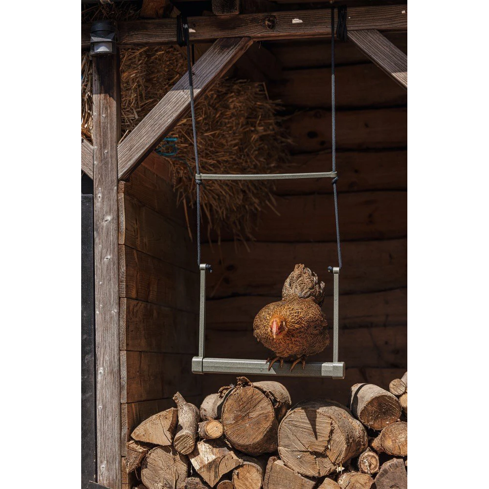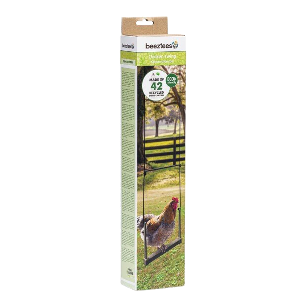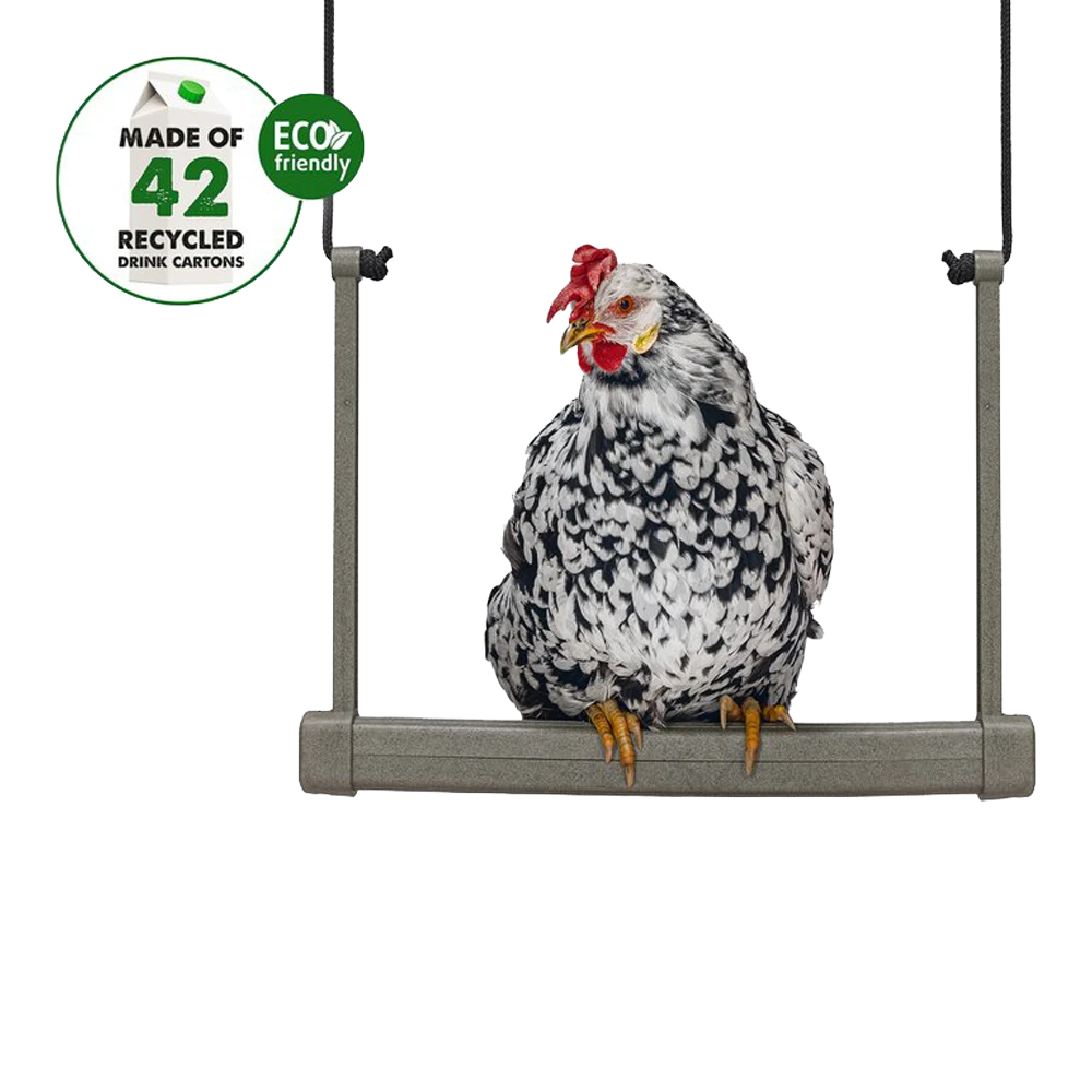 Maak kennis met de Beeztees Kippenschommel – Het ultieme speelplezier voor jouw kippen! Laat jouw kippen genieten van een zwierend en draaiend avontuur met de Beeztees Kippenschommel. Deze fantastische kippenschommel biedt jouw kippen de kans om heerlijk te ontspannen en te genieten van hun omgeving. Hang de schommel op in hun verblijf en zie hoe ze plezier beleven aan het schommelen op een stok of tak. De Kippenschommel is voorzien van een stabilisator om de balans te behouden. Met twee touwen van 2 meter lang kun je zelf bepalen waar en hoe hoog je de schommel wilt ophangen. En als de schommel een reinigingsbeurt nodig heeft, gooi je hem gewoon in de vaatwasser op de ECO-stand. Niet alleen is de Beeztees Kippenschommel leuk speelgoed voor jouw kippen, maar het is ook ecologisch verantwoord. De schommel is namelijk gemaakt van 100% gerecycled plastic, afkomstig van ongeveer 42 drinkpakken. De papiervezels van deze drinkpakken zijn hergebruikt bij de fabricage van diverse producten, waaronder deze schommel. Op deze ECO-vriendelijke manier worden gebruikte drinkpakken gered van de verbrandingsoven en krijgen ze een nieuw leven als nuttige producten. Het meegeleverde touw is gemaakt van gerecyclede PET-flessen. Bestel nu de Beeztees Kippenschommel en geef jouw kippen een speelervaring waar ze van zullen houden!