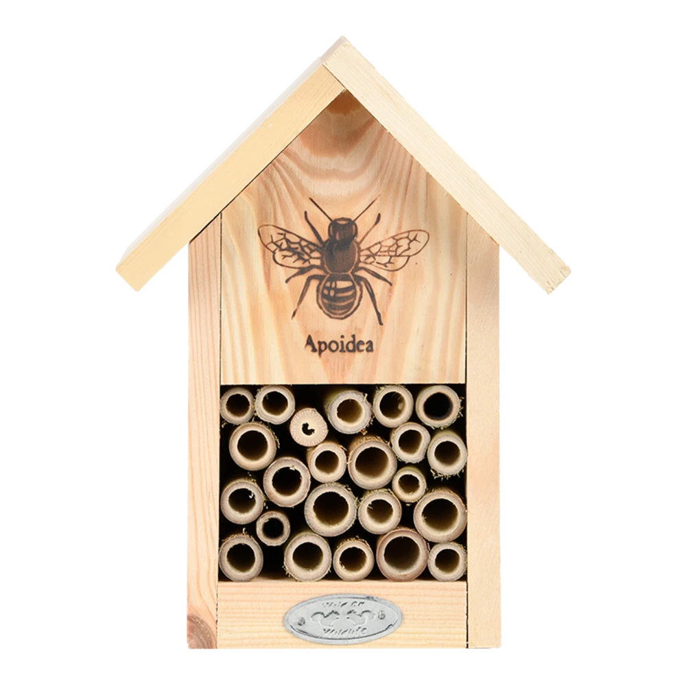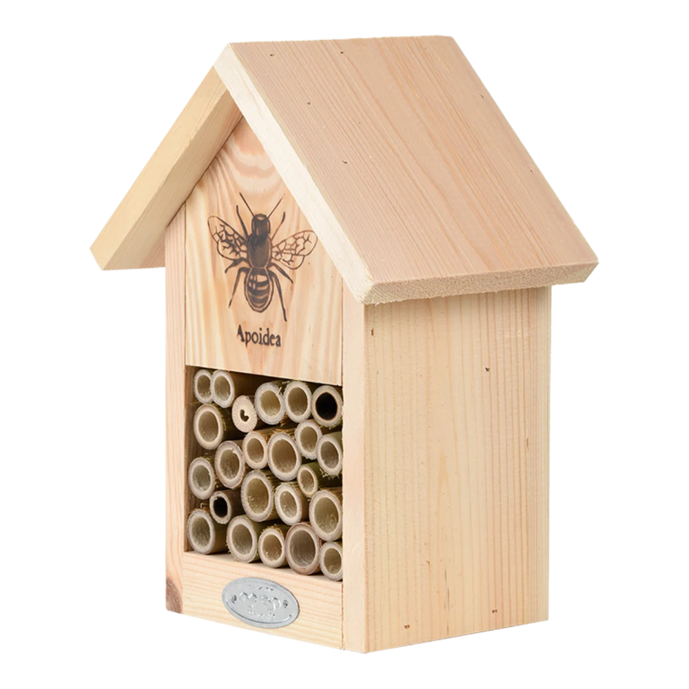 Wilde bijen zijn onmisbaar in onze tuinen. Het ingebrande silhouet zegt het al: dit huis is geschikt voor deze hardwerkende insecten. Een vrouwtjesbij maakt in de holle bamboestengel meerder cellen waar zij eitjes in legt.