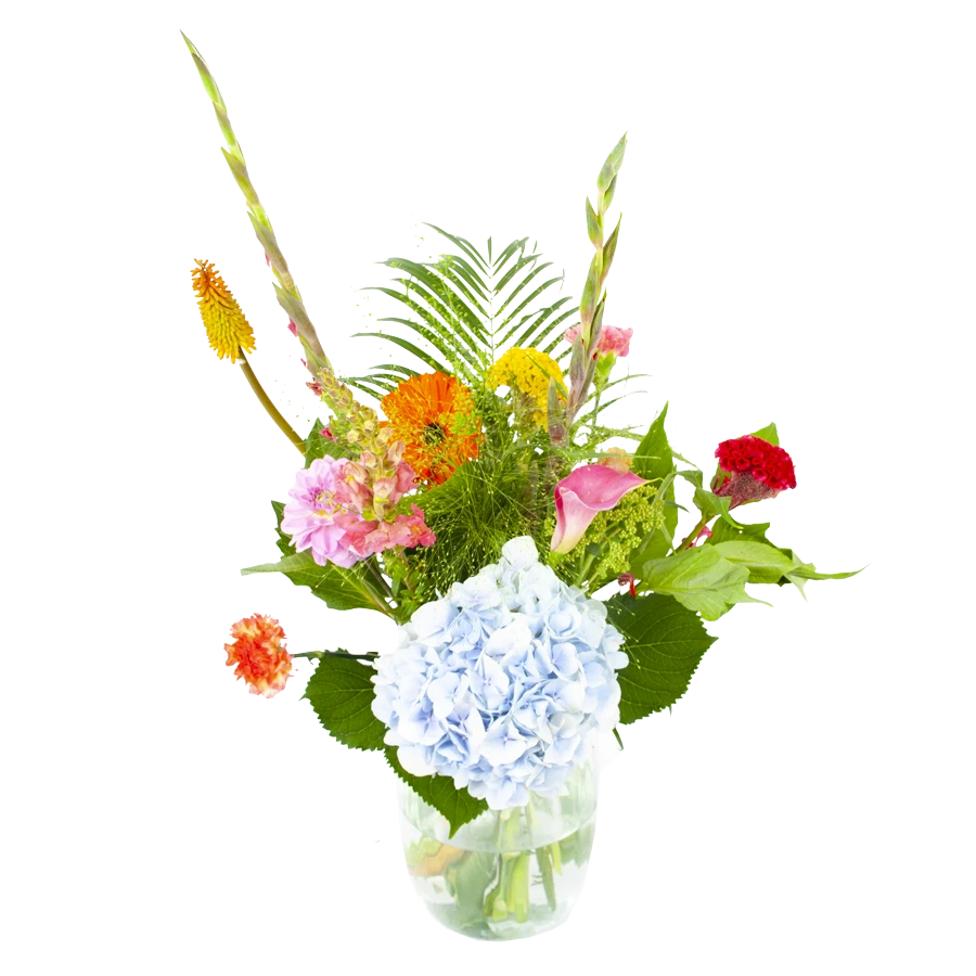 Met Boeket Lach breng je gezelligheid in huis. Het boeket zomerse en kleurrijke uitstraling. Verwen jezelf of breng bij iemand anders een lach op het gezicht! * Exclusief accessoires en vaas