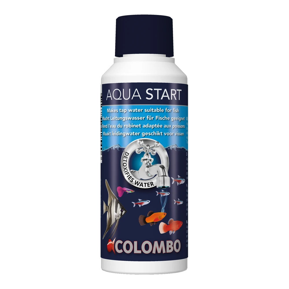 Colombo Aqua Start ontgiftigt het water, verwijdert chloor en beschermt de vissen. Door het verversen van het water verandert de watersamenstelling wat tot gezondheidsproblemen bij vissen kan leiden. Het gebruik van Aqua Start helpt deze problemen te voorkomen en maakt leidingwater geschikt voor vissen.