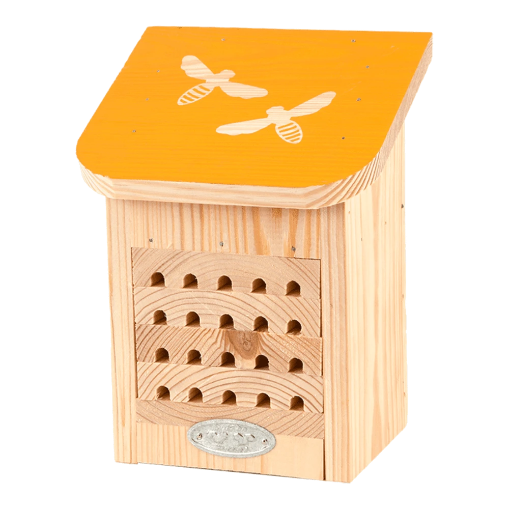 Vele wilde bijensoorten worden bedreigd door de achteruitgang in flora en nestgelegenheden. Dit bijenhuis is voorzien van vier houten trays die verwijderd kunnen worden voor inspectie of om schoon te maken. Het gaten in het bijenhuis trekken solitaire bijen aan waardoor diverse soorten wilde bijen hier kunnen nestelen. Een vrouwtjesbij maakt in een gat verschillende cellen met een eitje en wat pollen en nectar voor de larve.