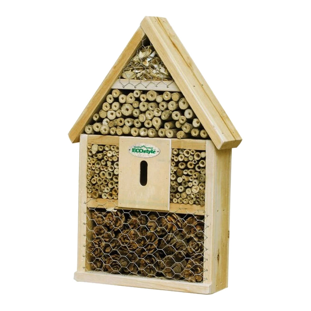 Een grote diversiteit aan insecten in uw tuin draagt bij aan een gezonde tuin en vermindert indirect ook de overlast van ongedierte zoals luizen op planten. Dit grote insectenhotel van ECOstyle biedt huisvesting voor onder andere lieveheersbeestjes, metselbijen, vlinders en gaasvliegen en helpt hun ook de winter door. Gemaakt van stevig hout en gaas.