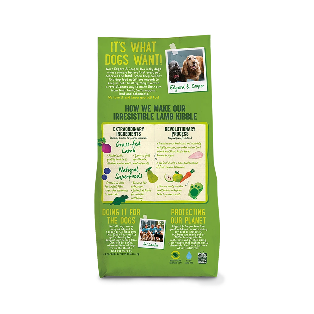 | Beschrijving samenstelling | Samenstelling: vers lam 41%, aardappelen, erwten, erwteneiwit, lijnzaad, lamssaus, zonnebloemolie, mineralen, aardappeleiwit, visolie, mannan-oligosachariden, fructo-oligosachariden, wortels 0,04%, appels 0,04%, peer 0,04%, broccoli 0,04%, banaan 0,04%, boerenkool 0,04%, spinazie 0,04%, rode bieten 0,04%, bosbessen 0,04%, goudsbloemblaadjes, brandnetel, braambesblaadjes, venkel, karwij, kamille, melisse. |