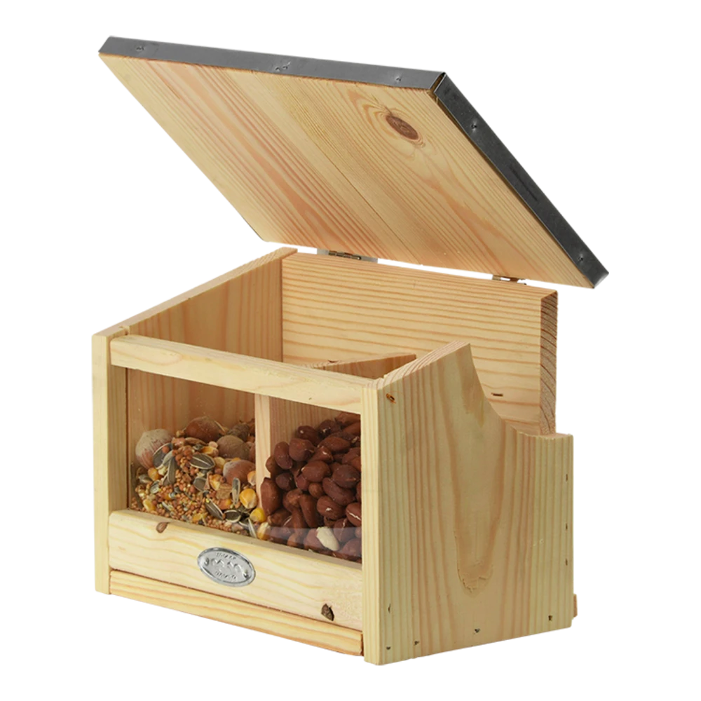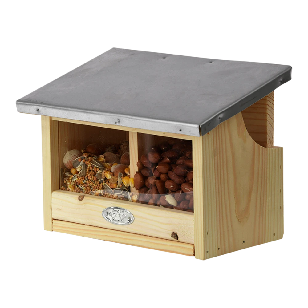 Vergroot de kans dat een eekhoorn uw tuin bezoek met het voederhuis van Best for Birds. Dit voederhuis is voorzien van twee vakken, hierdoor kunt meerdere soorten eekhoornvoer aanbieden. Ook is het hierdoor mogelijk dat er meerdere eekhoorns tegelijk van hun maaltijd kunnen genieten in je tuin.
