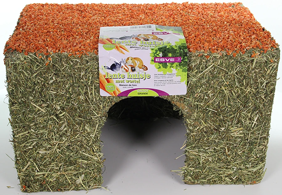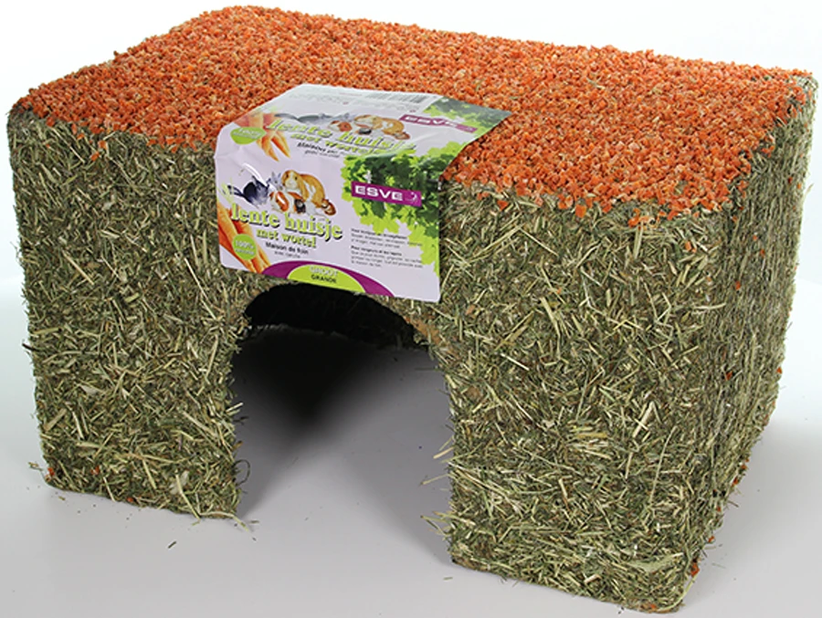 | Beschrijving samenstelling | Samenstelling: Wieidehooi, gedroogde wortel, karton |