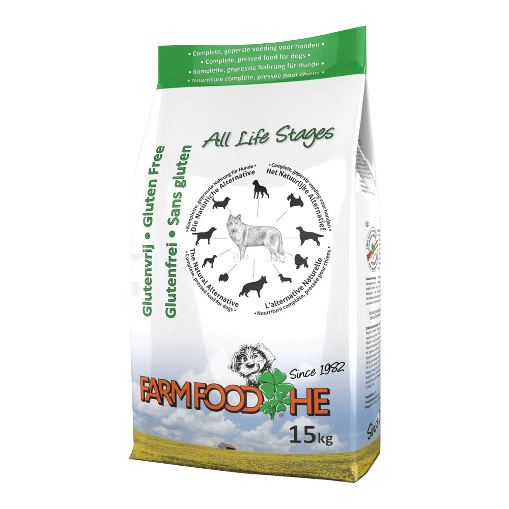 Het Farmfood hondenvoer bestaat uit 100% natuurlijke geperste hondenbrokken op basis van rund, mais en sorghum. Dit maakt het voer glutenvrij zonder dat er teveel mais in het voer aanwezig is.