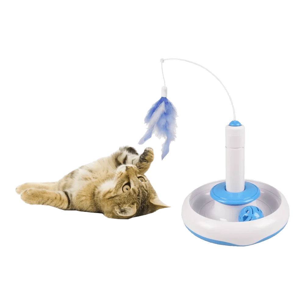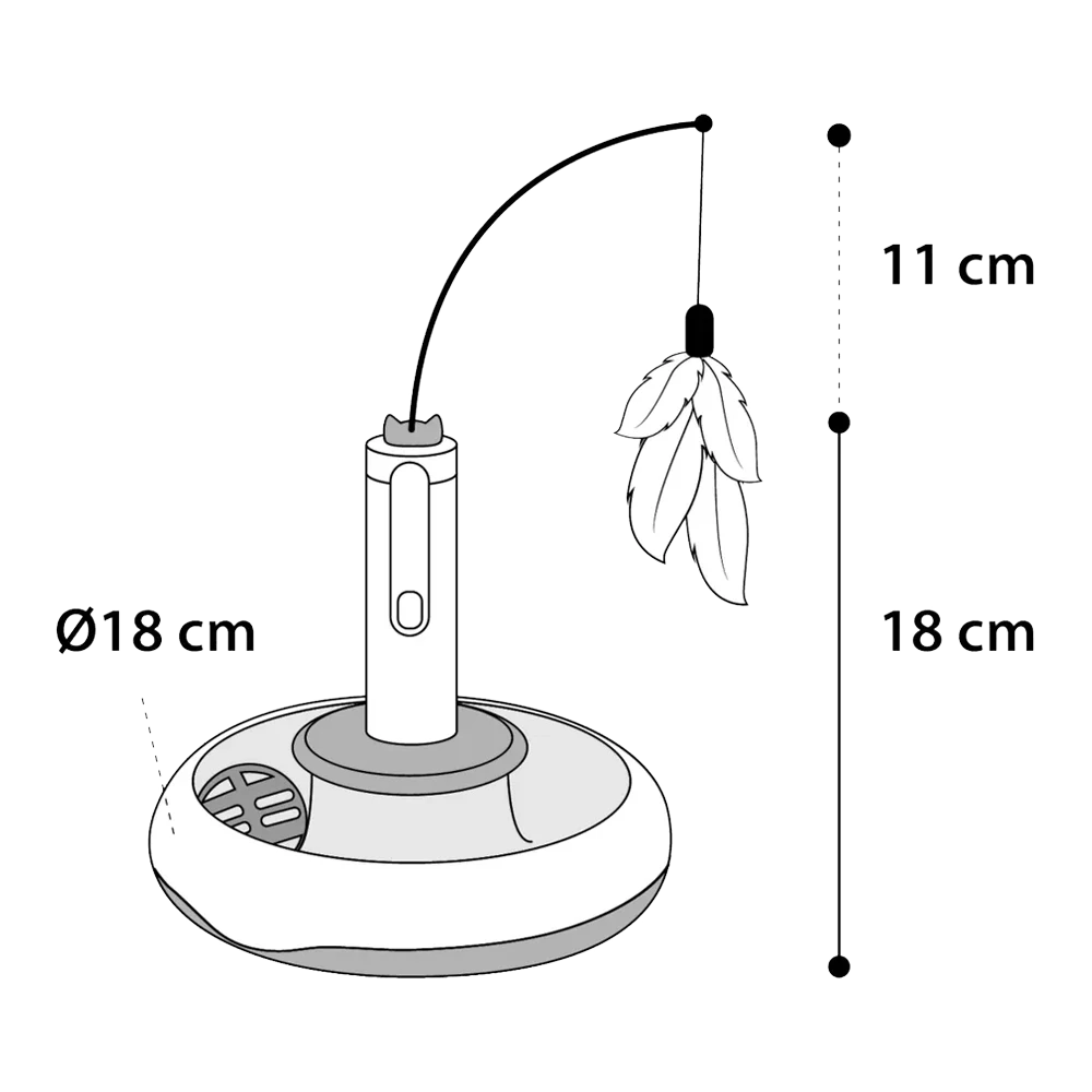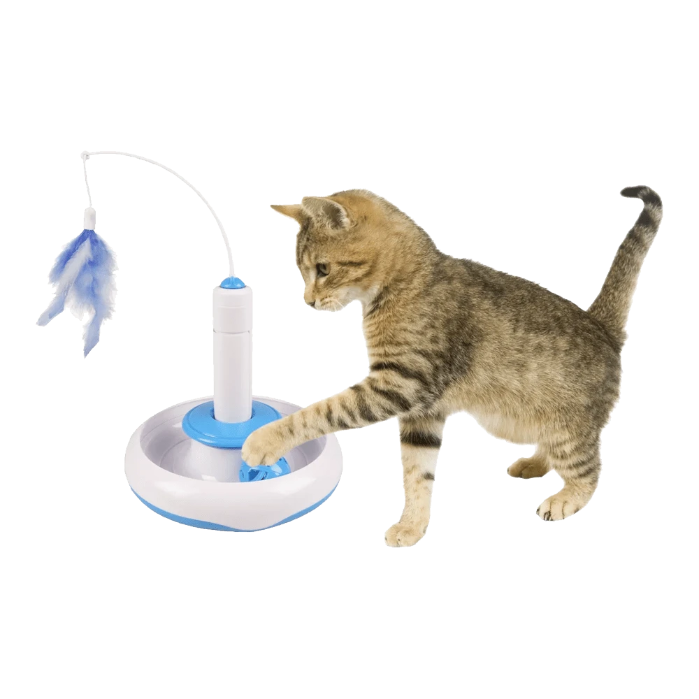 Zoek je een kattenspeeltje voor je kat? Dan is dit een leuk speeltje! De waterbestendige ballentoren stimuleert het spelen van je kat. De kattentoren wordt geleverd met bijbehorende veer en bal welke een rinkelend geluid maken. Om de veren te laten roteren heb je 3 AAA-baterijen nodig, welke niet worden meegeleverd. Je kat zal uren lang speelplezier hebben met dit speeltje.