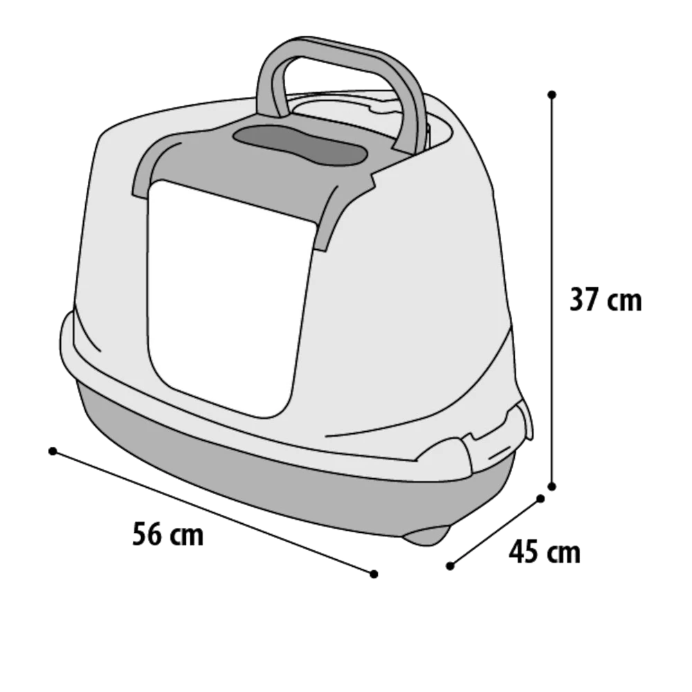 De kattenbak heeft een afmeting van L45xB56XH37 en is verkrijgbaar in meerdere kleuren.