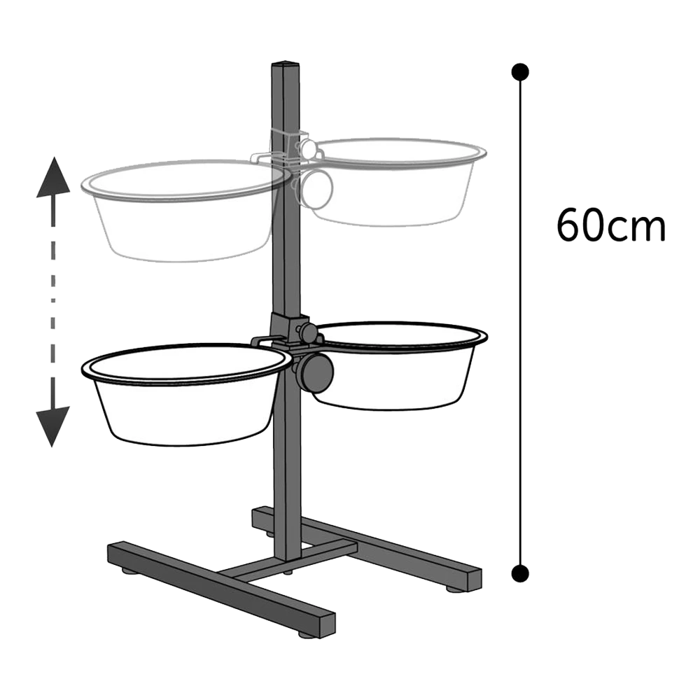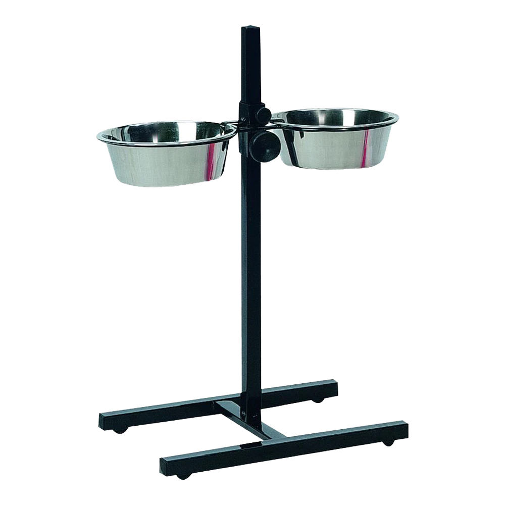 Deze duo voer- en drinkbak is praktisch, stevig en beschikt over twee RVS bakken met bijbehorend standaard met antisloppoten, zodat de bakken op zijn plek blijven. De bakken hangen door middel van een standaard 60cm boven de grond. Deze voerbak is dus perfect voor middelgrote tot grote honden. Koop vandaag nog een duo voer- en drinkbak voor je hond.