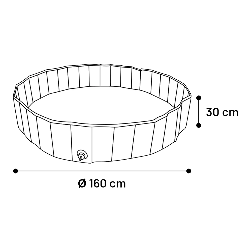 Dit hondenzwembadje biedt verkoeling aan uw hond. Het is makkelijk op te stellen, geen luchtpomp nodig. Met afsluitbare dop. Na gebruik kan je het makkelijk weer terug opvouwen om op te bergen.