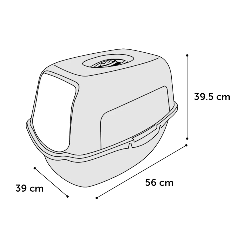 De kattenbak heeft een afmeting van L56xB39XH39,5.