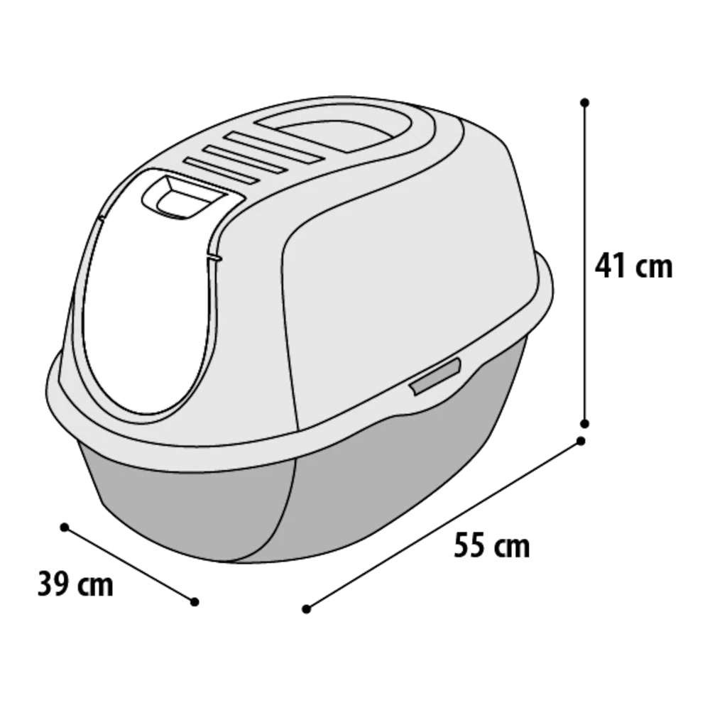 De kattenbak heeft een afmeting van L55xB39XH41.