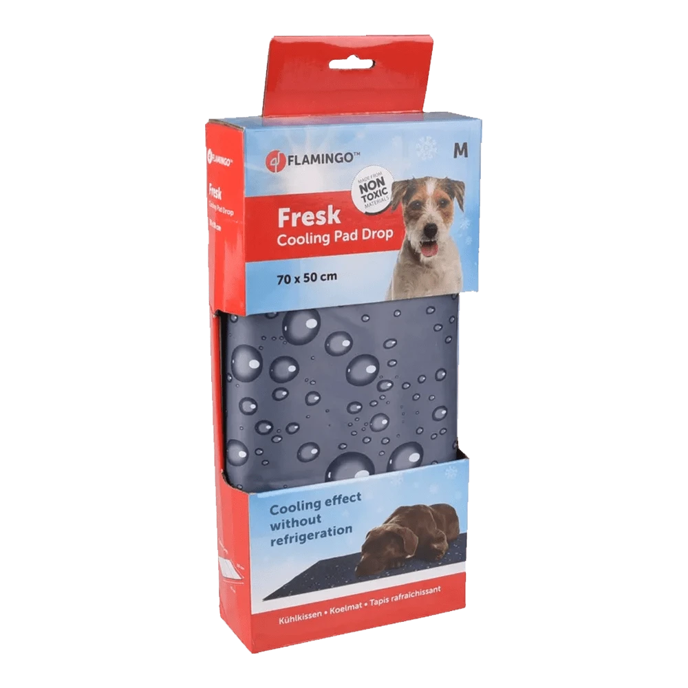 Leuke koelmat voor uw huisdier (Hond of Kat) met druppelmotief. De mat is gevuld met een niet giftige gel en koelt direct bij lichaamscontact, geen diepvries of koelkast nodig. Makkelijk schoon te maken met vochtige doek. Kan direct gebruikt worden. Het is mogelijk de koelmat in de koelkast te leggen voor extra verkoeling.