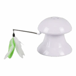Zoek je een kattenspeeltje voor je kat? Dan is dit een leuk speeltje ! De veertjes zullen bewegen 360 graden, waardoor je kat gaat jagen op de veertjes. Doordat het speeltje verandert van richting en snelheid wordt de kat extra uitgedaagd. Ook is er een laser waar je kat achteraan zal gaan. Dit kattenspeelgoed is dus perfect voor een actieve kat. Je kat zal uren lang speelplezier hebben met dit speeltje. Dit product wordt geleverd inclusief oplaadbare batterijen en oplader.