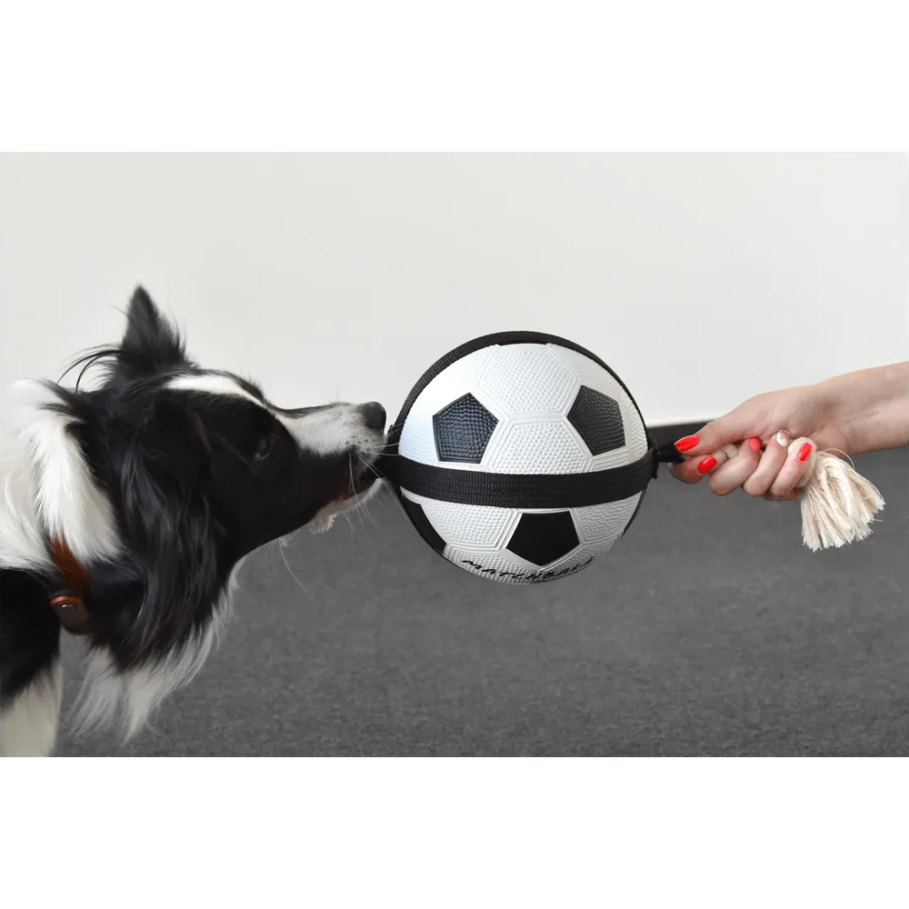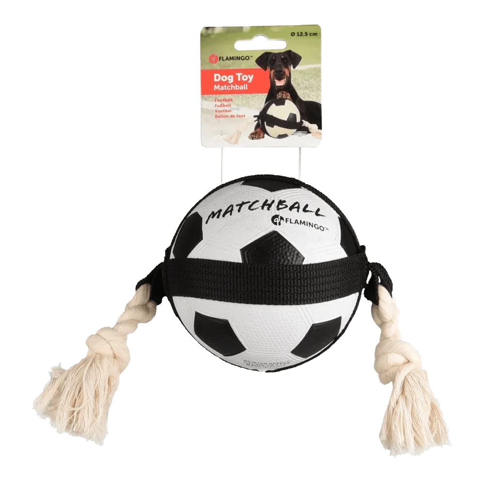 Zoek je leuk hondenspeelgoed voor je hond? Met deze matchball voetbal met touw kan je hond lekker spelen. Door de knopen kun je het touw goed vasthouden en de bal zorgt ervoor dat de hond ook uitdaging heeft om de bal te vangen tijdens het stuiteren. Dit touw zorgt voor uren lang speelplezier bij je hond.