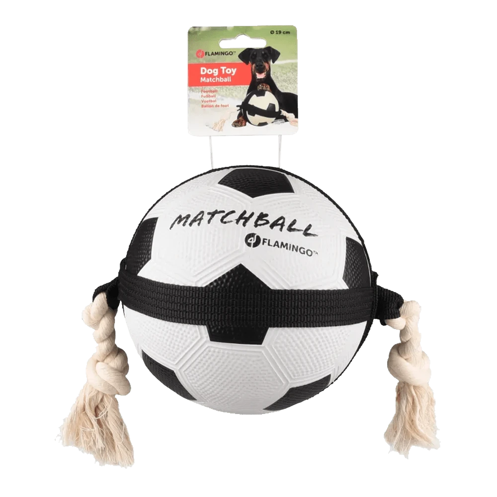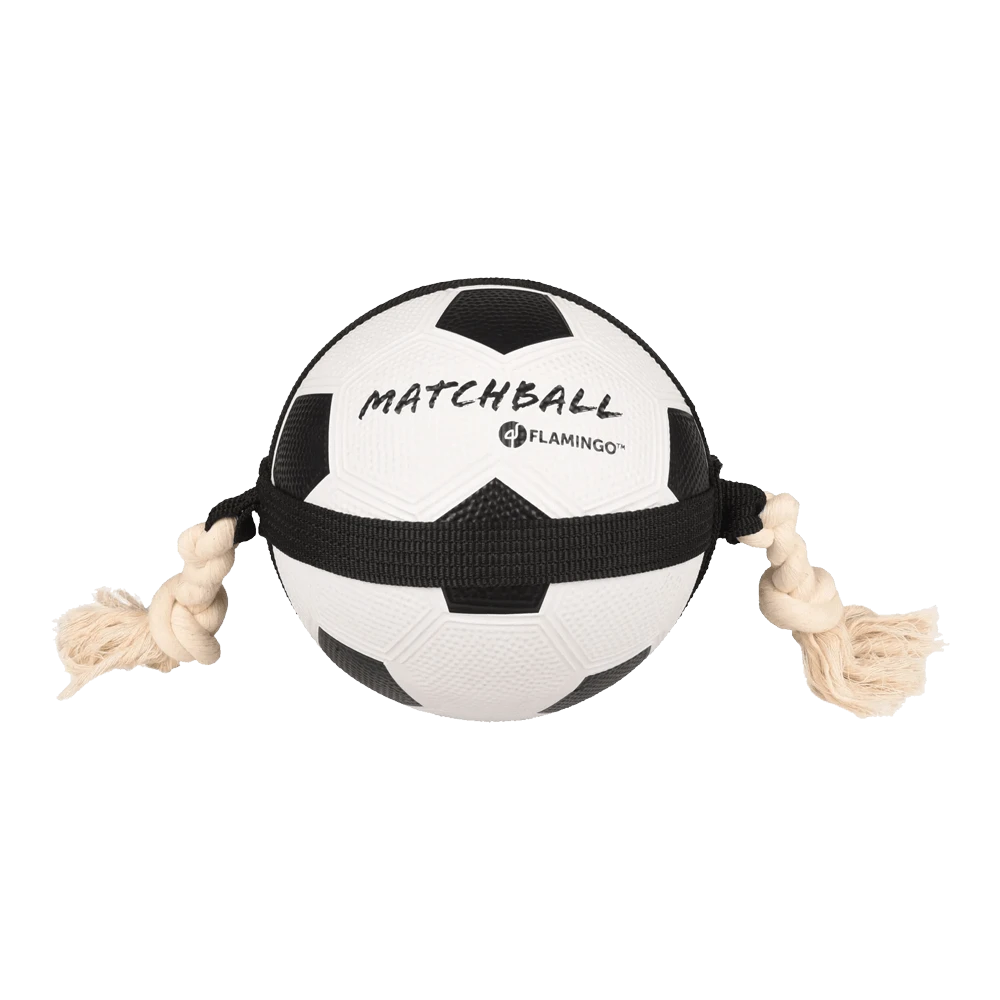 Zoek je leuk hondenspeelgoed voor je hond? Met deze matchball voetbal met touw kan je hond lekker spelen. Door de knopen kun je het touw goed vasthouden en de bal zorgt ervoor dat de hond ook uitdaging heeft om de bal te vangen tijdens het stuiteren. Dit touw zorgt voor uren lang speelplezier bij je hond.