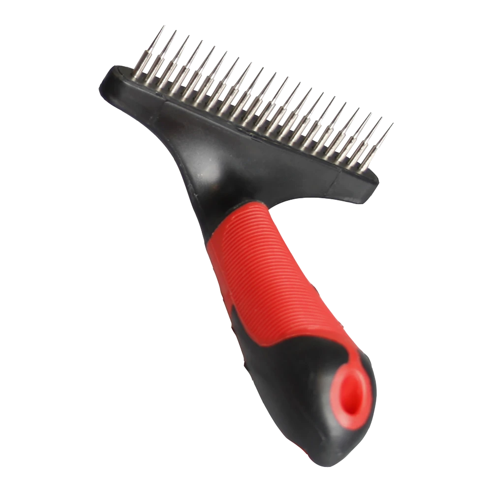 Met deze enkele trimhark is het gemakkelijk om het haar van uw hond te ontwarren. De meeste knopen worden geëlimineerd zonder te trekken, dankzij de afgeronde roterende tanden van roestvrij staal. Voor gekrulde, langharige, zachte of grove vachten.