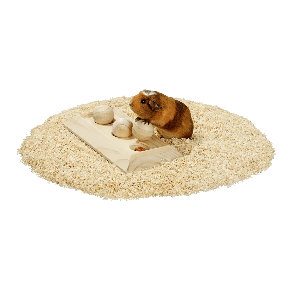 Ben je opzoek naar speelgoed voor je knaagdier? Dan is dit speeltje perfect. Dit platform met drie houten ballen zorgt ervoor dat je knaagdier de ballen wil verplaatsen. Dit zorgt dat je knaagdier actiever is en lekker kan spelen. Verder is het ook nog goed voor het brein van je knaagdier, omdat het moet nadenken over hoe de ballen eruit kunnen.