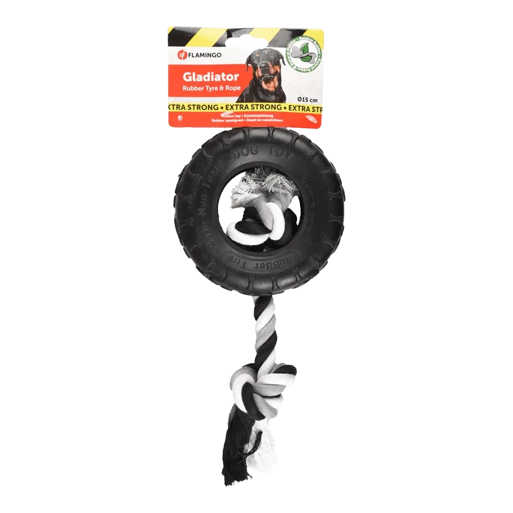 Zoek je leuk hondenspeelgoed voor je hond? Met deze rubberen gladiator band en touw kan je hond lekker spelen. Deze rubberen gladiator band en touw zorgt voor uren lang speelplezier bij je hond.