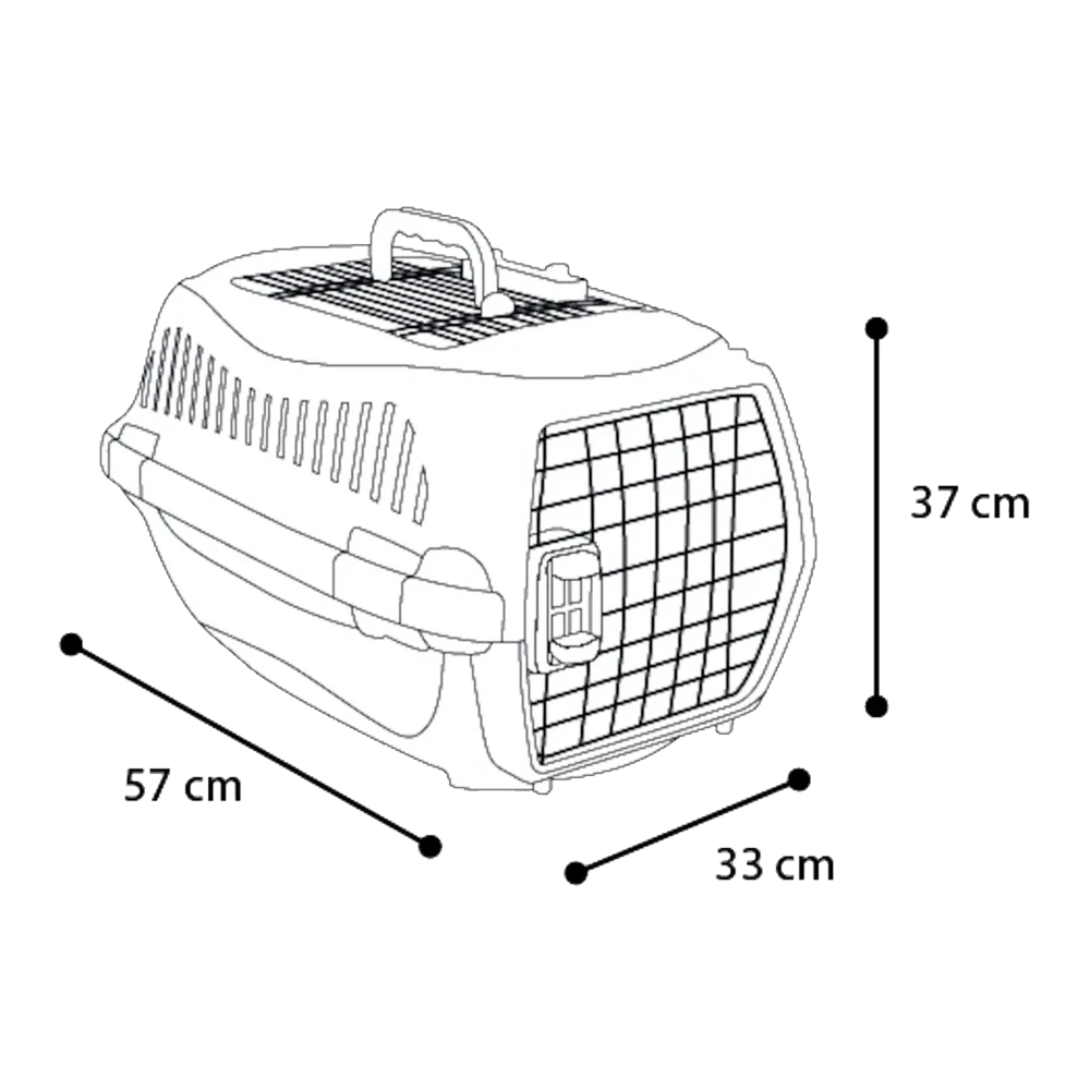 Deze vervoersbox heeft een afmeting van 35x57x37cm.