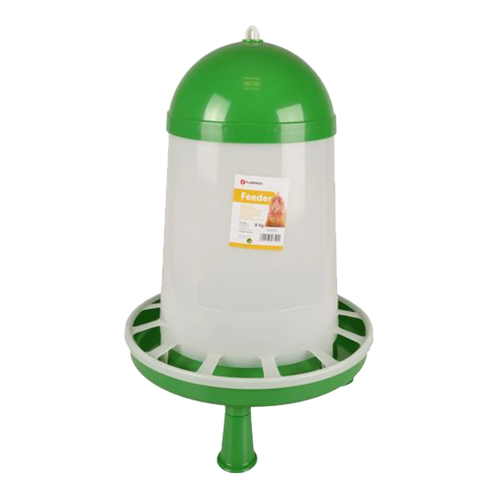 Ben je opzoek naar een voerbak voor jouw kippen? Met deze voersilo kun je jouw kippen voeren. De voersilo is ook ophangbaar en beschikt over poten, zodat de voeding van de grond afstaat. De voersilo is in verschillende maten verkrijgbaar: 3kg, 6kg en 8kg,