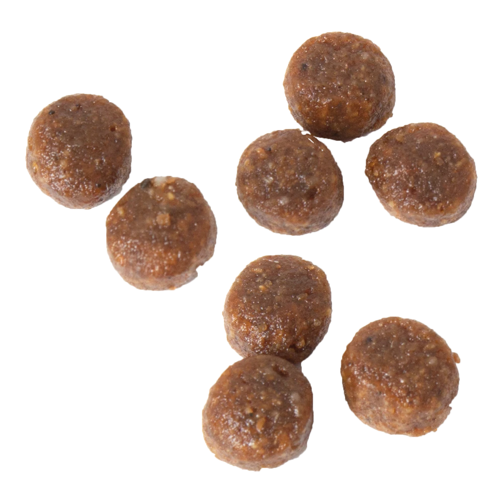 | Beschrijving samenstelling | Samenstelling: Gedroogd gevogelte (32,5% gevogelte gedehydrateerd) , maïs, gevogeltevet, rijst (min. 14%), dierlijk eiwitextract, gedroogde vis, gedroogde bietenpulp, eipoeder, biergist, mineralen, lijnzaad, zalmolie, inuline (bron van FOS) |