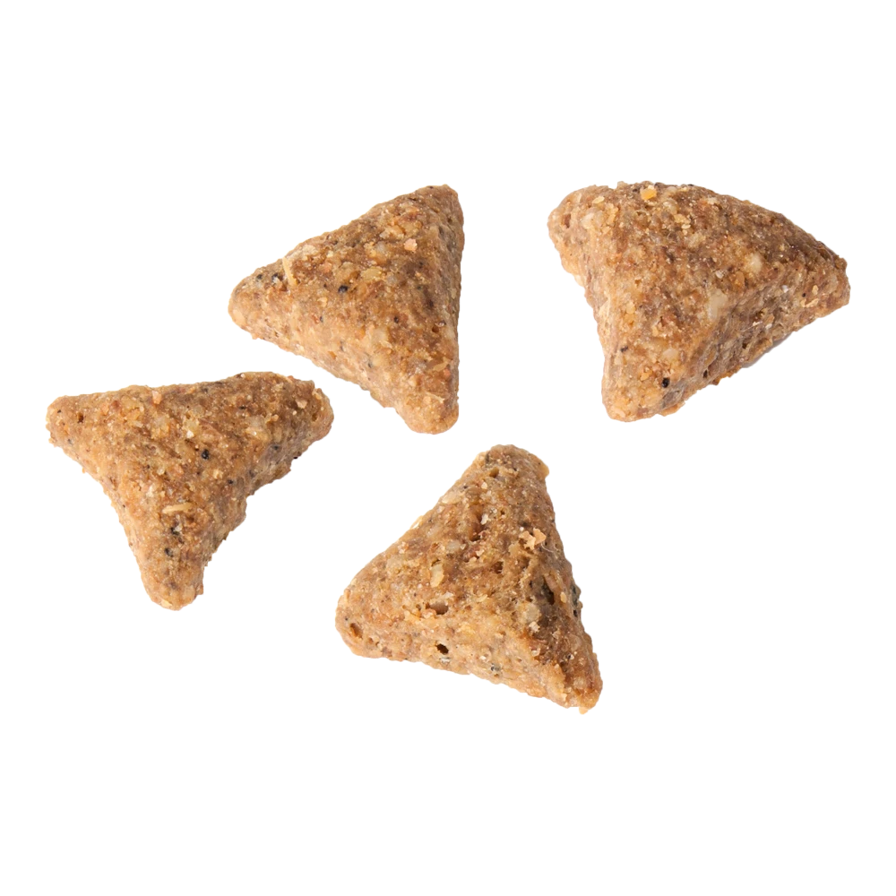 | Beschrijving samenstelling | Samenstelling: Gedroogd gevogelte (27% gevogelte gedehydrateerd) , dierlijk eiwitextract, rijst (14%), erwten, gerst, gevogeltevet, cellulose, maïs, maïsgluten, zalmolie, lijnzaad, gedroogde zalm, eipoeder, biergist, inuline (bron van FOS), cranberries. |