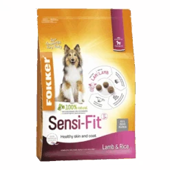 Fokker Sensi-Fit is een high premium hondenvoeding voor volwassen honden op basis van lam en rijst. Fokker Sensi-Fit is bijzonder geschikt voor gevoelige honden en honden met de neiging tot allergieën. Dit kwaliteitsproduct bevat o.a. Noorse zalmolie, als bron van omega 3-6 vetzuren, precies in de meest optimale verhouding, wat een volle en glanzende vacht ondersteunt. Tevens helpt Fokker Sensi-Fit eczeem, haaruitval en een schilferige huid te voorkomen. Door de hoge smakelijkheid is Fokker Sensi-Fit ook geschikt voor kieskeurige eters. Fokker Sensi-Fit is een absoluut top-product.