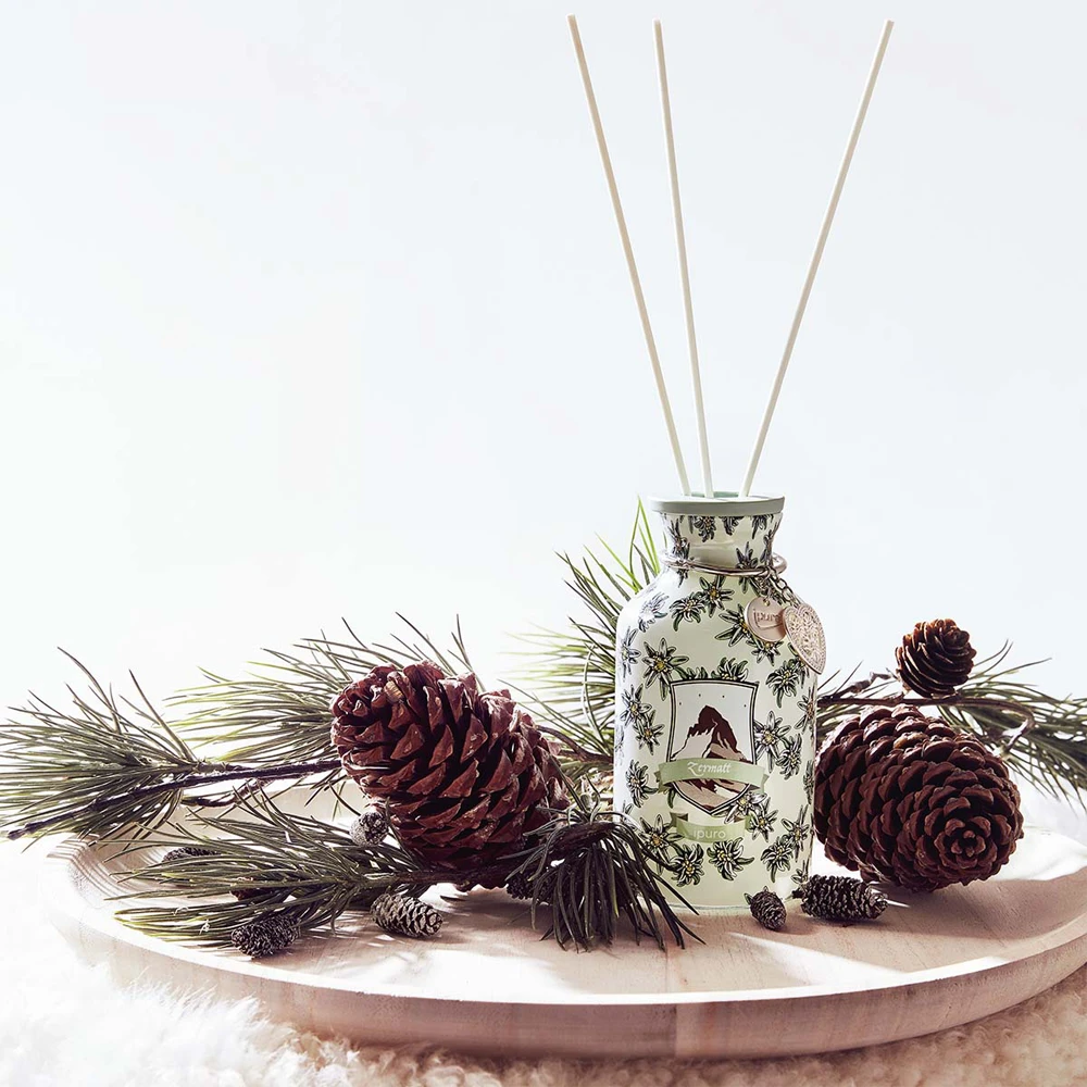 Ipuro Geurdiffuser Zermatt 240ml is een winterse geurdiffuser. In deze geur ontmoet traditie internationale flair, de zon schijnt fel aan de hemel en wordt weerspiegeld in de imposante bergen. Groen hooglandgras, magnolia, zwarte thee en dennen geven deze geur zijn houtachtig-kruidige karakter. Ook is de fles prachtig gedecoreerd en heeft deze een luxe uitstraling, waardoor deze prachtig staat in elk interieur. Zermatt is een geur uit de Limited Edition lijn van Ipuro en zal dan ook deze winter verkocht worden.