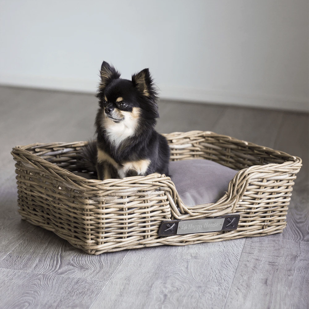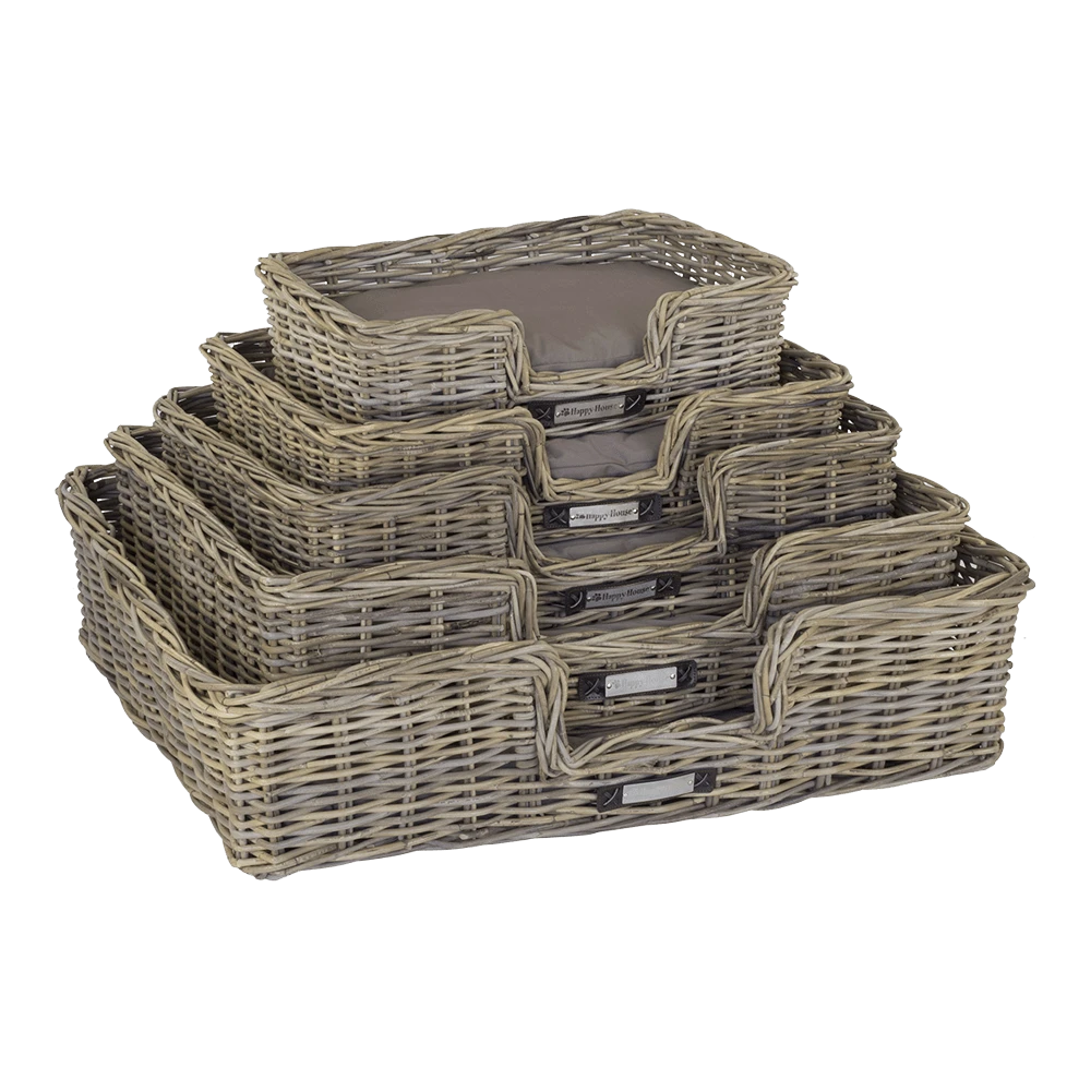 Populair zijn de rechthoekige rieten manden van Happy-House. Een tijdloze mand die in elk interieur mooi zal staan. In deze rieten mand kan je viervoeter heerlijk liggen. Het mandje wordt geleverd met een taupe kleurig kussen, de hoes is wasbaar op 30 graden. Verkrijgbaar in 5 verschillende maten. Riet is een natuurproduct, al onze rieten producten worden met de hand gevlochten in Indonesië, hierdoor kunnen kleine kleur- en afwerkingsverschillen ontstaan, ook in gelijke items. Meer informatie vindt u onder ‘materiaal eigenschappen’.