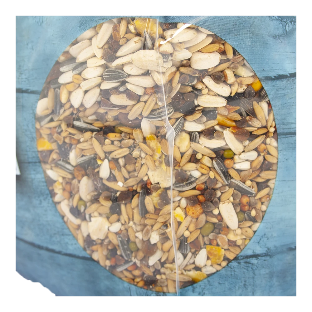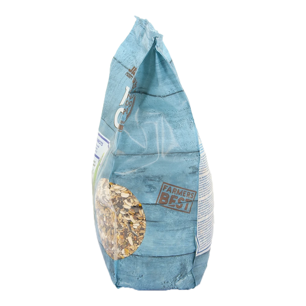 | Beschrijving samenstelling | Samenstelling: Tarwe, gepunte haver, boekweit, paddy, wit millet, witte zonnebloempitten, gestreepte zonnebloempitten, cardiumpitten, gele maïs, rode dari, hennep, maïsvlokken, gepofte tarwe, witte maïs, katjang idjoe, cedernoten, erwtenvlokken, rozijnen, wortelstukjes, lijsterbessen, raapolie, wortelkrokets. |