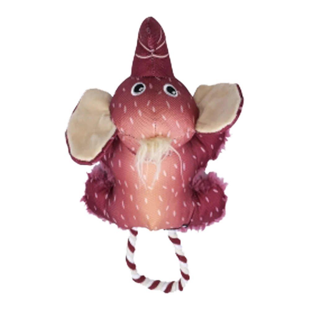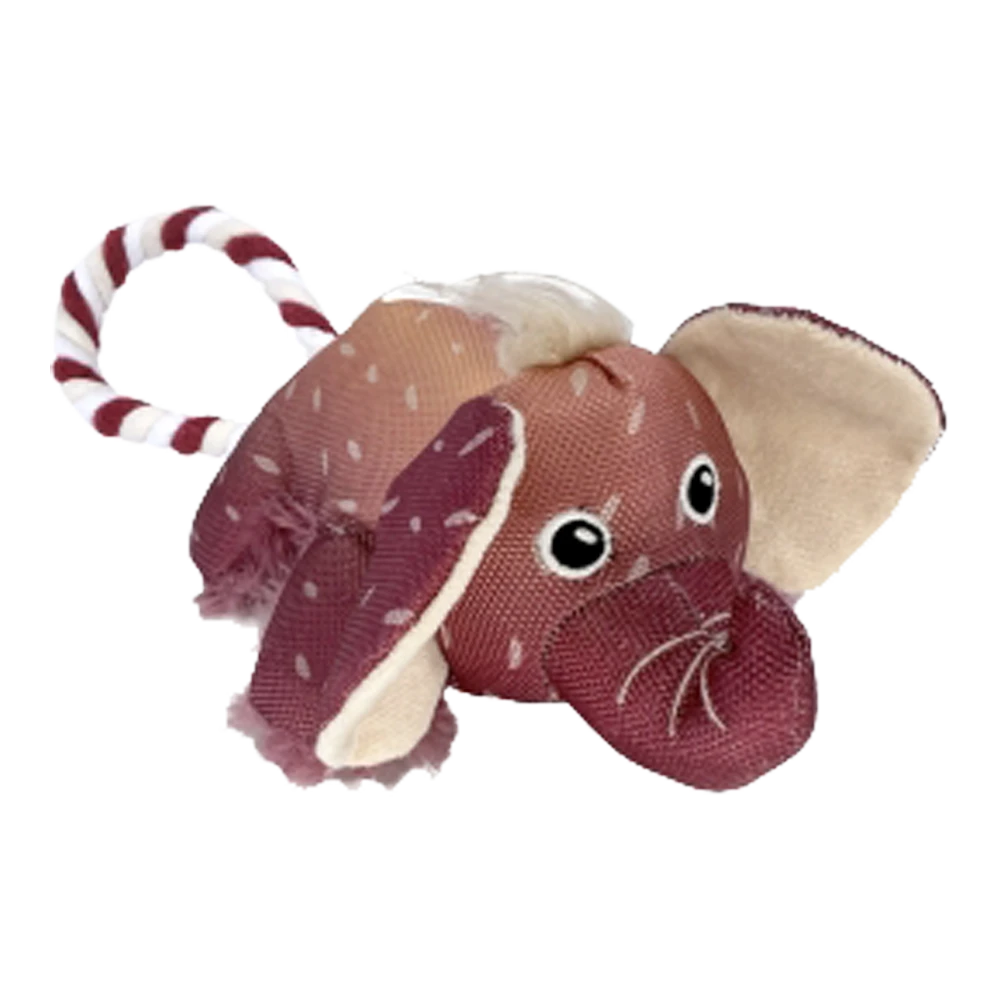 Het touwhandvat van cozie tuggz elephant is gemaakt van stevig katoen dat in zijn lichaam is geknoopt voor een extra stevige connectie. Dit handvat is gemaakt voor de nodige trekactie. De olifant piept en ritselt om het plezier te vergrotenl. Het zachte pluche van deze kleine dikhuid nodigt uit tot knuffellen tussen het touwtrekken door.