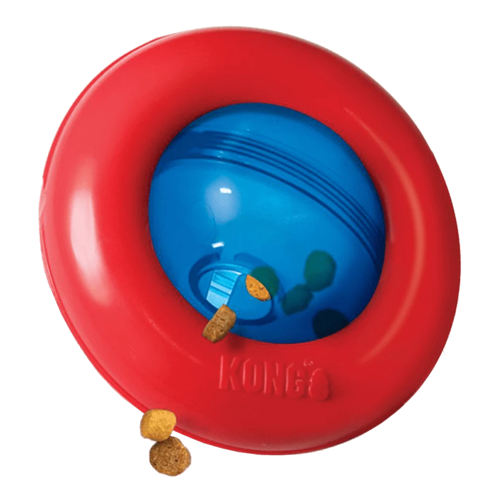 De nieuwe KONG Gyro zal honden zeker bezighouden en intrigeren met onweerstaanbare rollen en kantelen. De dynamische bol die in het midden draait met de statische buitenring stimuleert honden om de Gyro te duwen en te rollen met hun poten. De bol geeft gaandeweg steeds weer een lekkere beloning. Stop de bol vol met snacks of knabbelbrokjes voor extra en langer speelplezier, ideaal voor solospel.