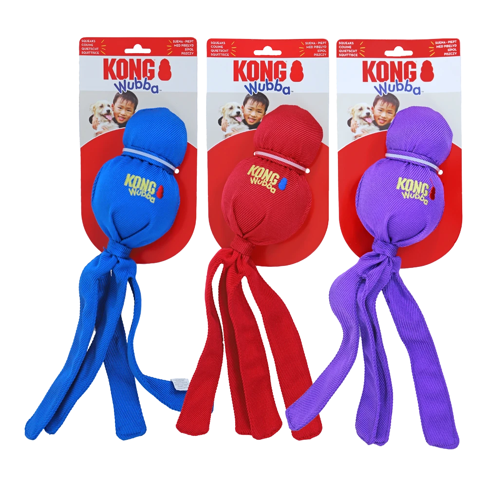 De KONG Wubba is een grappig interactief gooi- en trekspeeltje. Onverslijtbare, verstevigde nylon stof bedekt beide ballen — een tennisbal bovenop en een piepbal onderop. Door de lange staarten is het gemakkelijk op te pakken en te gooien. Honden zijn er dol op om de Wubba te laten piepen en de slingerende staarten heen en weer te schudden. Assorti Dit product is een assorti product. Dit betekend dat u willekeurig één van de afgebeelde variaties krijgt opgestuurd. Wilt u een specifieke variatie, breng dan een bezoek aan ons Tuincentrum, waar ook een Jumper Diersuper in gevestigd zit in Beek en Donk.