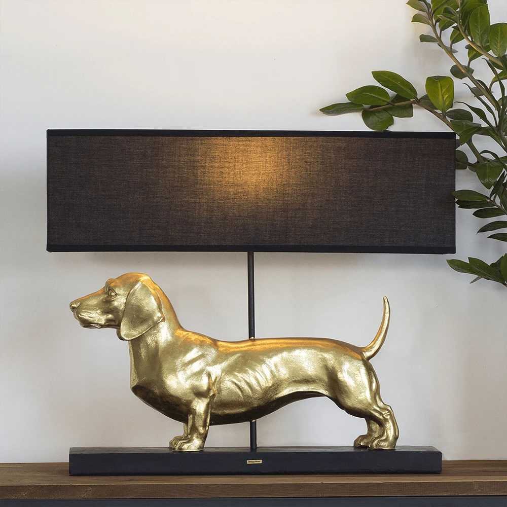 Deze teckellamp is speciaal voor alle de teckelliefhebbers! Deze lamp is een echte eyecatcher in elk interieur. De lamp is gemaakt van polyresin en wordt geleverd met een zwarte lampenkap.
