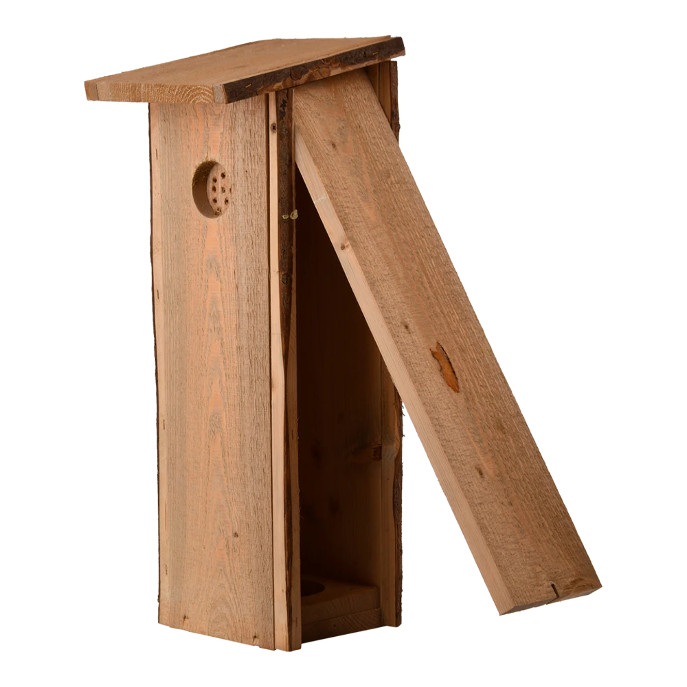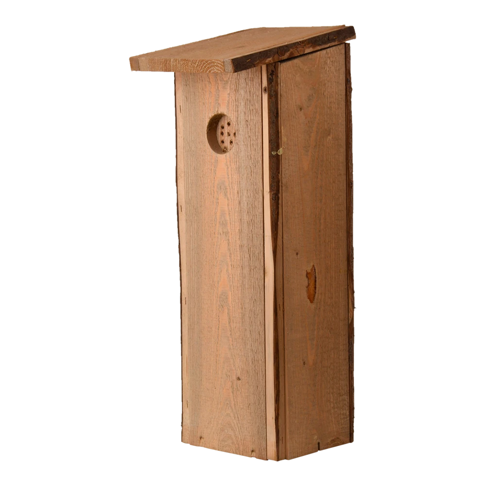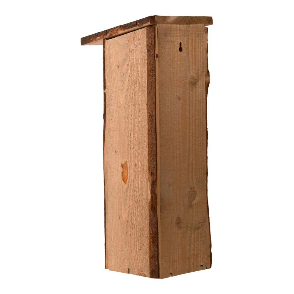 Deze nestkast is speciaal ontworpen voor spechten. Zo heeft het deze nestkast een extra dikke komvormige bodem voor de eieren en een afgesloten vliegopening welk spechten van nature zelf uithakken. In de winter bewijst de kast vaak goede diensten voor de vogels om te schuilen tegen het barre weer. Inclusief deur om nestkast te kunnen openen voor schoonmaak.