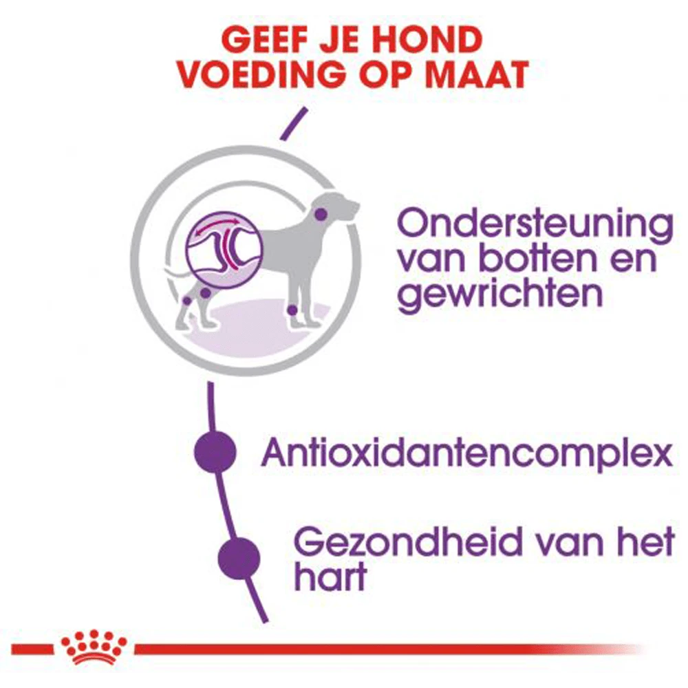 Royal Canin is toegewijd aan het leveren van voedingsoplossingen voor de behoeften van je huisdier. Alle producten ondergaan een uitgebreid kwaliteitscontroleproces om de optimale kwaliteit van de voeding te garanderen en om te voldoen aan de specifieke voedingsbehoeften en levensstijl van je hond. Als je hond Royal Canin Giant Adult eet, krijgt hij een complete en uitgebalanceerde voeding voorgeschoteld.