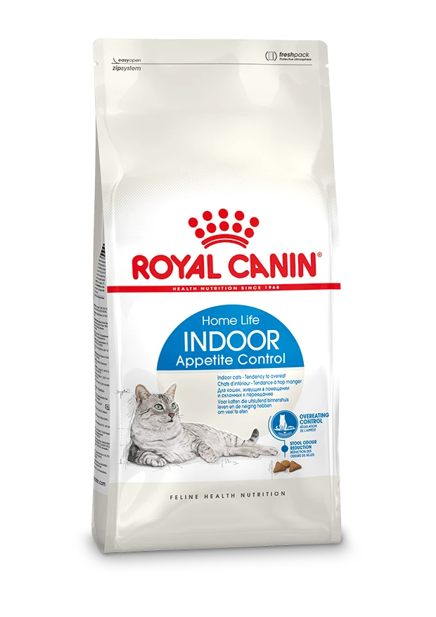 ROYAL CANIN® Indoor Appetite Control is speciaal ontwikkeld met de voedingsbehoeften van jouw binnenkat in het achterhoofd.Als jouw binnenkat de neiging heeft te veel te eten, is het belangrijk dat haar voeding voedingsstoffen bevat die haar helpen haar eetlust te reguleren. ROYAL CANIN® Indoor Appetite Control reguleert de eetlust van je binnenkat op een natuurlijke manier, door middel van een uitgebalanceerde hoeveelheid eiwitten en vezels. De zeer goed verteerbare eiwitten in ROYAL CANIN® Indoor Appetite Control helpen niet alleen de hoeveelheid ontlasting te verminderen, maar verminderen ook de geur. De aanwezigheid van specifieke vezels, zoals psyllium, in ROYAL CANIN® Indoor Appetite Control vergemakkelijken de stoelgang en helpen daarmee de vorming van haarballen te verminderen.ROYAL CANIN® Indoor Appetite Control helpt ook de gezonde urinewegen van jouw volwassen binnenkat te ondersteunen. Varianten van ROYAL CANIN® Indoor droge voeding zijn ook beschikbaar, afhankelijk van de levensstijl, uiterlijk en leeftijd van je kat: Indoor 27, Indoor Long Hair, Indoor 7+.