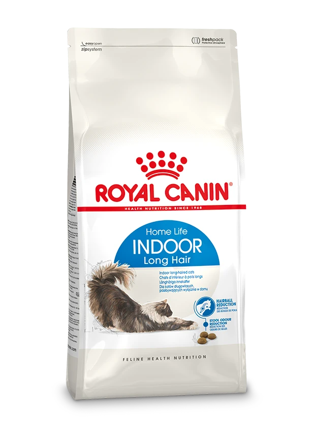 ROYAL CANIN® Indoor Long Hair is speciaal ontwikkeld met de voedingsbehoeften van jouw langharige binnenkat in het achterhoofd.ROYAL CANIN® Indoor Long Hair vergemakkelijkt de stoelgang en helpt ingeslikte haren via de ontlasting uit te scheiden. Dit heeft als voordeel voor langharige katten dat het helpt de vorming van haarballen te verminderen.De goed verteerbare eiwitten in ROYAL CANIN® Indoor Long Hair ondersteunen de spijsvertering. Eiwitten die goed verteerbaar zijn, verminderen niet alleen de hoeveelheid ontlasting, maar helpen ook geurtjes te verminderen. De voedingsstoffen EPA en DHA in ROYAL CANIN® Indoor Long Hair voeden de huid en de glanzende vacht. Varianten van ROYAL CANIN® Indoor droge voeding zijn ook beschikbaar, afhankelijk van de levensstijl, uiterlijk en leeftijd van je kat: Indoor 27, Indoor Appetite Control, Indoor 7+
