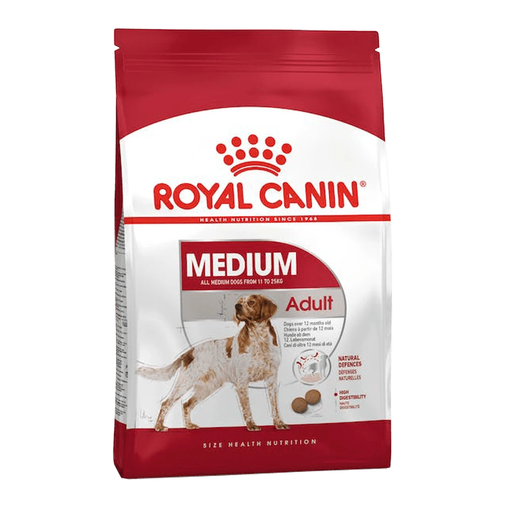 Op een leeftijd van één jaar heeft je middelgrote hond lichamelijk de volwassenheid bereikt. Goede voeding met de juiste voedingsstoffen in de juiste hoeveelheden is ook in deze fase van zijn leven essentieel en ondersteunt een goede gezondheid. ROYAL CANIN® Medium Adult is samengesteld met de voedingsbehoeften van je middelgrote hond in het achterhoofd en is geschikt voor honden met een leeftijd tussen de 1 en 7 jaar, en een volwassen gewicht tussen de 11 en 25 kilogram. ROYAL CANIN® Medium Adult bevat een exclusief antioxidantencomplex dat, net als voedingsstoffen zoals manno-oligo-sacchariden, de natuurlijke Immuunsysteemvan je hond ondersteunt. ROYAL CANIN® Medium Adult bevordert de optimale Spijsvertering dankzij een exclusieve formule met hoogkwalitatieve eiwitten en uitgebalanceerde voedingsvezels. Daarnaast is ROYAL CANIN® Medium Adult verrijkt met omega 3 vetzuren (EPA-DHA) wat helpt een gezonde huid te behouden.