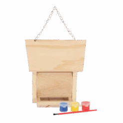 Met deze doe-het-zelf set kan de voedertafel helemaal naar wens worden geverfd. De set bestaat uit een voedertafel, een kwast en verschillende kleuren verf.